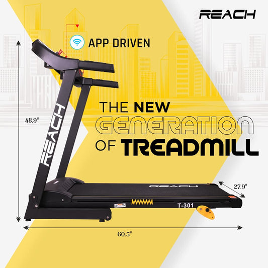 T-301 Folding Treadmill Peak 4 HP | Foldable Home Fitness Equipment with LCD Display for Walking & Running | Cardio Exercise Gym Machine | 4 Incline Levels | 12 Preset or Adjustable Programs | Bluetooth Connectivity | 100 Kgs Max User Weight