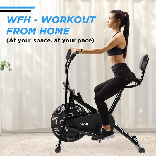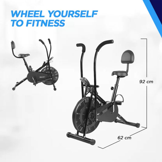 ELEV8 By Ab-110 Bh Air Bike Exercise Cycle With Moving Or Stationary Handle With Back Support Seat & Side Handle For Support Cushioned Seat Fitness Cycle For Home Gym, Black