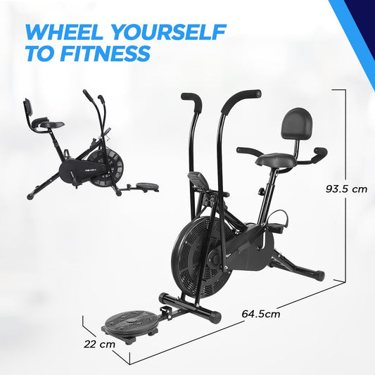 AB-110 BHT Air Bike Exercise Cycle with Moving or Stationary Handle | with Back Support Seat + Side Handle + Twister | Adjustable Resistance with Cushioned Seat | Fitness Cycle for Home Gym