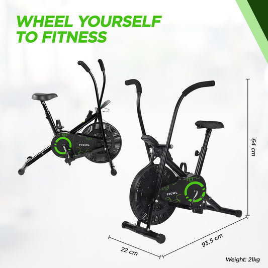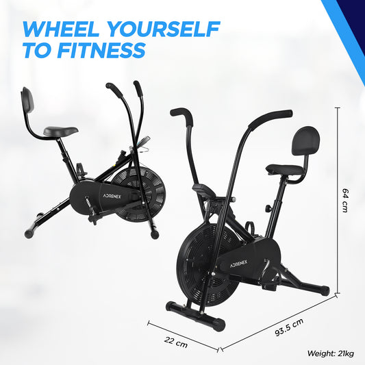 AB-110 Air Bike Exercise Cycle with Moving or Stationary Handle | Adjustable Resistance with Cushioned Seat | Fitness Cycle for Home Gym