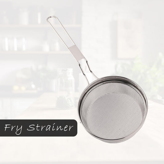 Stainless Steel Deep Fry Strainer for Kitchen - Chips & Pasta Cooking Jhara/Filter/Channi with Handle - Silver