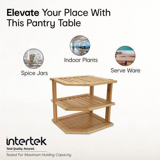 3 Tier Bamboo Corner Shelf - Sturdy Kitchen Organizer | Ideal for Utensils & Plants | 27cm(H) x 28cm(W)