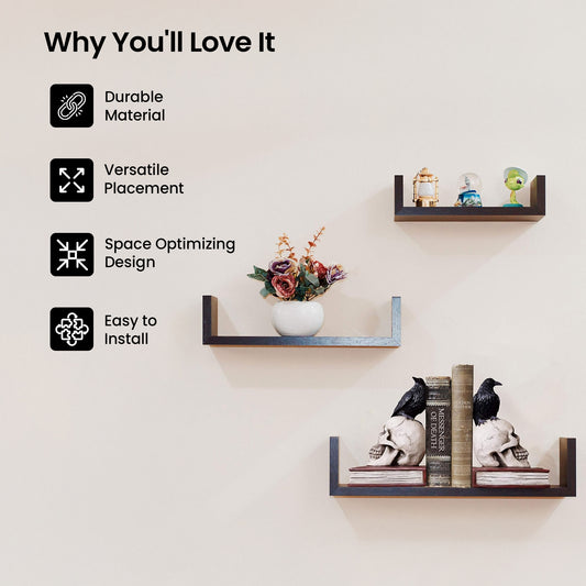U-shaped wooden Hanging shelves-Set of 3, Black Colour
