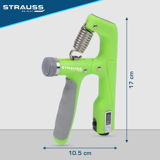 Strauss A-Shape Hand Grip with Digital Counter | Adjustable Resistance (10KG -100KG) | Hand/Power Gripper for Home & Gym Workouts | Finger & Forearm Hand Exercises & Strength Building (Green)