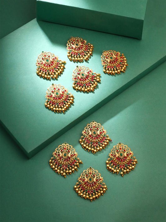 Bridal Wedding Choti Jadai Billai for Women | Traditional Golden Peacock Shaped Hair Pin for Women | Pack of 9 Pcs | Bridal Wedding Hair Accessories for Women