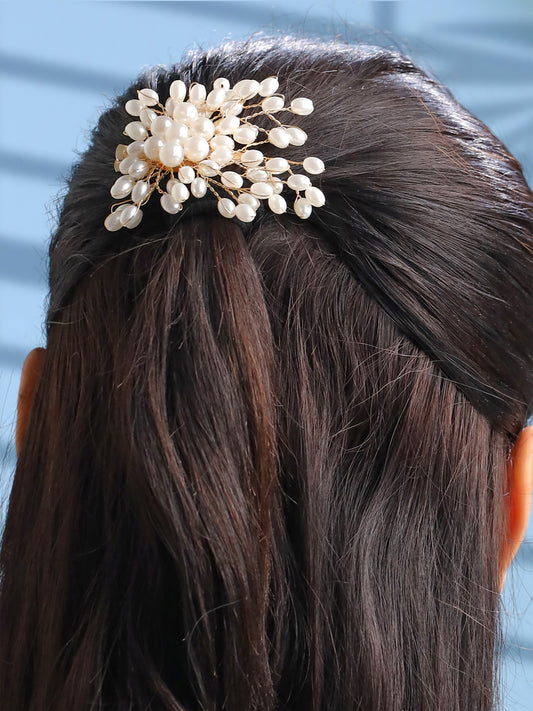 Comb Pin for Women Hair Accessories for Women Floral Comb Clips for Hair for Women White Pearl Hair Pin Bridal Hair Accessories for Wedding Side Pin / Comb Pin / Jooda Pin Accessories for Women