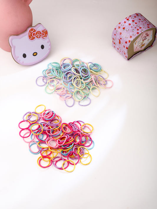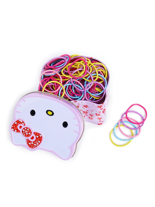 Pack of 200: Multicolor Ponytail Holders with Hello Kitty Box | Durable Rubber Bands | 2.5 CM (Diameter) | Fun Colors