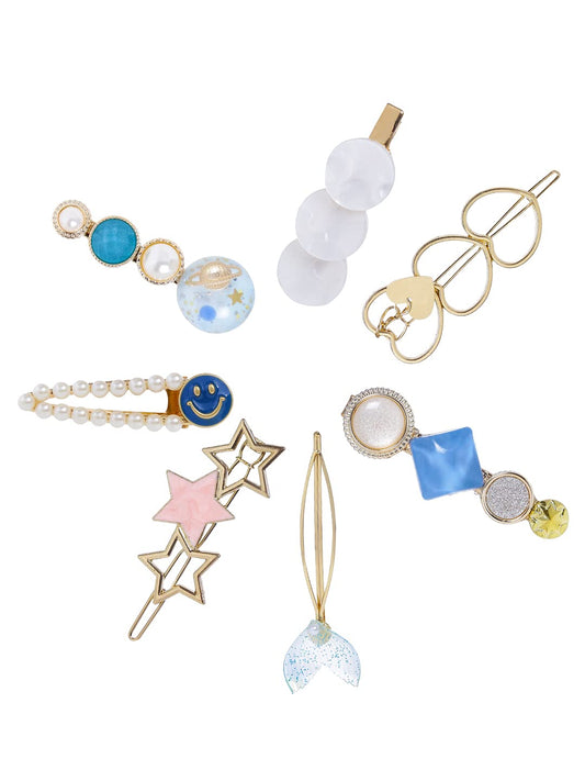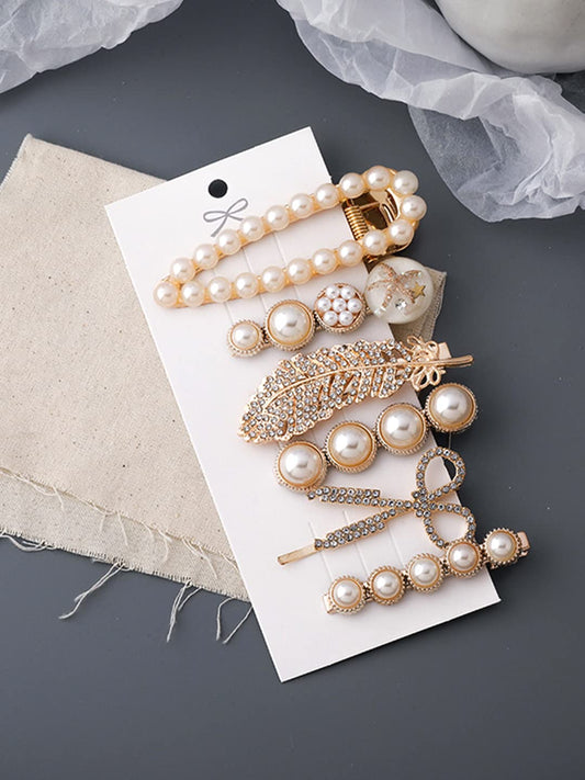 Combo: Hair Clips with Rhinestones & Pearls | 7 Pcs | Multicolor | For Stylish Hair Decoration