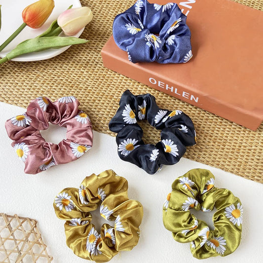 Scrunchies for Women Hair Accessories for Women 5 Pcs Satin Scrunchies Set Floral Print Rubber Bands Multicolor Scrunchie Ponytail Holders Hair Ties for Women and Girls Gifts for Women and Girls