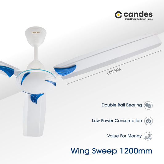 Lynx 1200Mm /48 Inch High Speed Anti-Dust Decorative 3 Stars Rated Ceiling Fan 2 Yrs Warranty (White Blue) Pack Of 1