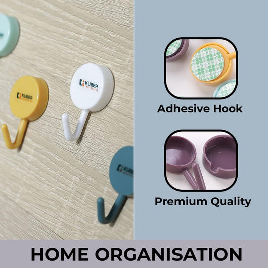 Homestic Sticky Hooks for Wall|Premium PP Build|Durable & Rust-Proof|Self Adhesive Hook for Easy Installation|Multi-Purpose Wall Hooks for Bathroom, Kitchen, Bedroom|Pack of 5|1601|Multicolor
