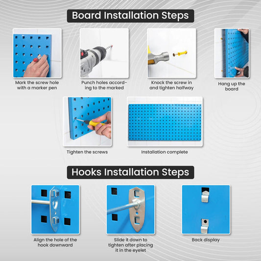 Metal Pegboard Wall Mount Tool Organiser with Multiple 19 Hooks & Accessories Included | Wall Shelves for Garage Workshop Room Study | For Hand Tools & Power Tools (90 * 45 * 1.6 cm)