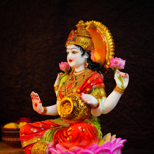 Aura Series Big Size Marble Dust Lakshmi Devi Idol (1 Feet) | Handpainted Laxmi Idol for Pooja, Home Decor, Office | Resin Varalakshmi Pooja Idol | Goddess Lakshmi Idol for Diwali Pooja