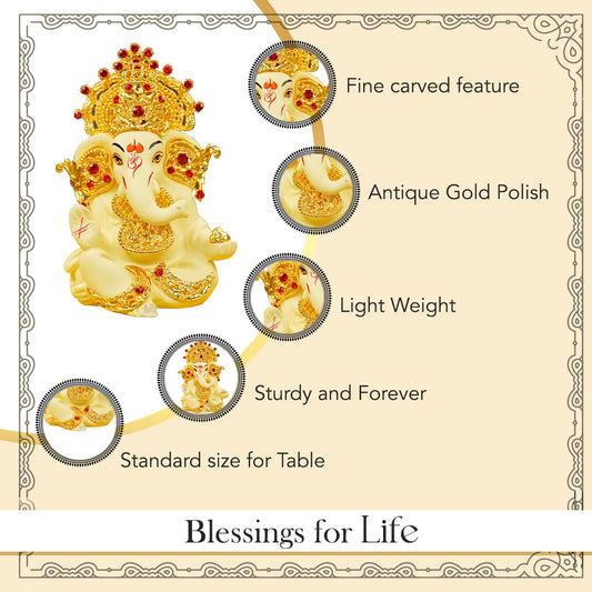 100% Pure Brass Ganesha Idol (Size: 5.5 cm) | Pital Ganesh Murti for Pooja Room, Home Decor, Office Desk and Car Dashboard | Vinayagar Statue for Diwali Puja