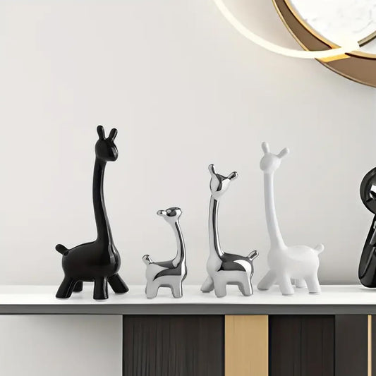 Giraffe Family Show Pieces For Home Decor Living Room Garden Decorative Items | Cute Animals Showpieces Gift Item For Decoration | Center Table Tv Shelf Office Interior Statue Figurines (4 Pcs)