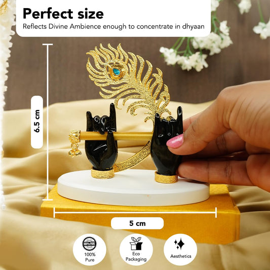 Lord Krishna Hands with Flute Idol (Small Size) | Krishna Flute Hand Statue | Krishnaji Divine Hands Idol with Flute and Peacock Feather | Krishna Statue for Car Dashboard & Griha Pravesh Gift