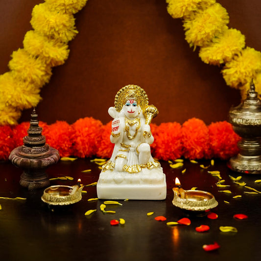 Aura Series Marble Dust Hanuman Ji Murti for Home Puja (5 inch) | Gold Plated Lord Hanuman Idol for Home Decor | Resin Bajrangbali Murti for Puja Room | Bahubali Hanuman Idol with Gada for Gift