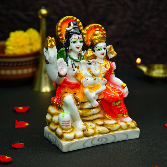 Hand Painted Shiv Parivar Murti (5 inch) | Marble Dust Shiv Parvati Murti for Pooja Room, Home Decor & Office | Resin Shiva Parvati Idol | Colorful Mahadev Bholenath Pariwar Statue for Gift