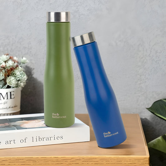 Splash Stainless Steel Water Bottle 1 Litre | Leak Proof, Durable & Rust Proof | Non-Toxic & BPA Free Steel Bottles| Steel Water Bottle | Dark Blue and Military Green(Pack of 2)
