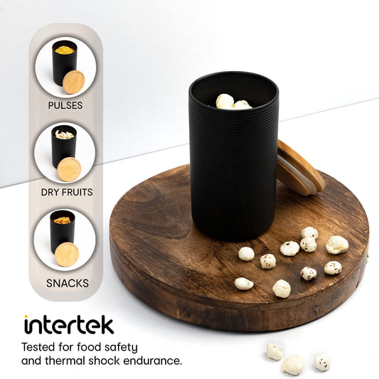 UMAI 260ml Ceramic Jar for Kitchen Storage | Air Tight Container Set with Bamboo Lid | Kitchen Container for Snacks, Tea, Sugar | Multipurpose Organizer | Black