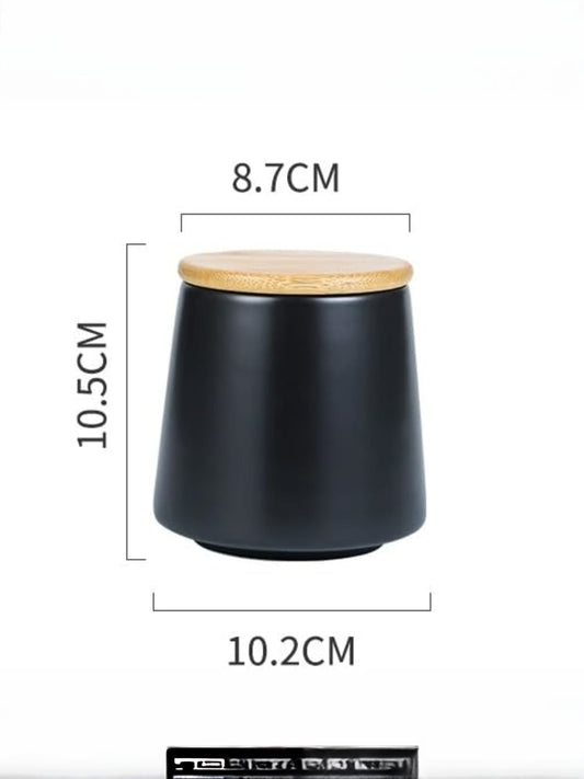 UMAI 260ml Ceramic Jar for Kitchen Storage | Air Tight Container Set with Bamboo Lid | Kitchen Container for Snacks, Tea, Sugar | Multipurpose Organizer | Black