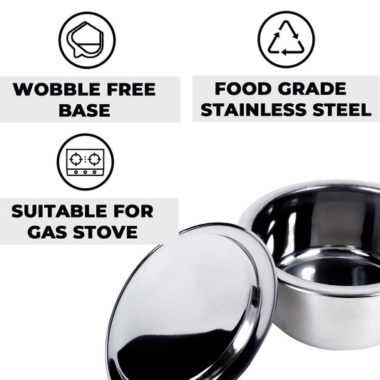 Set of 5 Stainless Steel Tope Set (800ml, 1L, 1.4L, 1.9L and 2.4L) with Lids I Gas Stove and Induction Compatible I Triply Tope I Heavy Duty Gauge