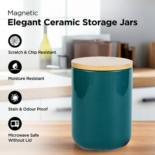 UMAI Ceramic Jar with Bamboo Lid | Kitchen Organizer Items and Storage | Multipurpose Airtight Container for Sugar,Salt,Snacks,Tea,Coffee|Kitchen Accessories Items| 800ml (Green)