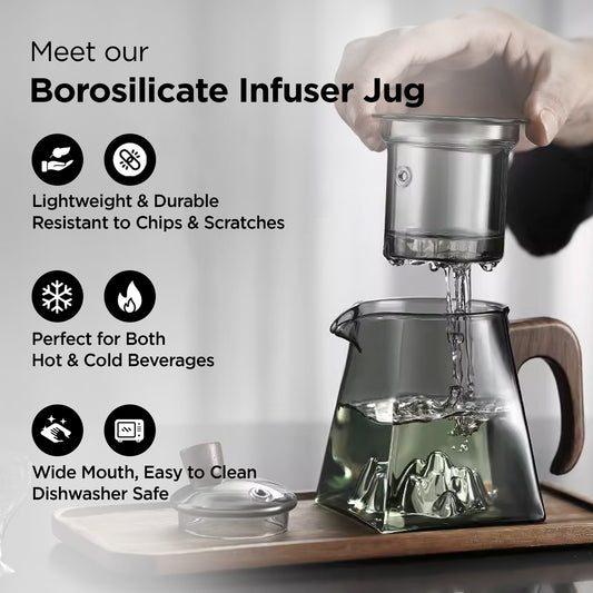 UMAI 700ml: Stovetop Glass Tea Kettle with Infuser & Bamboo Handle | Transparent
