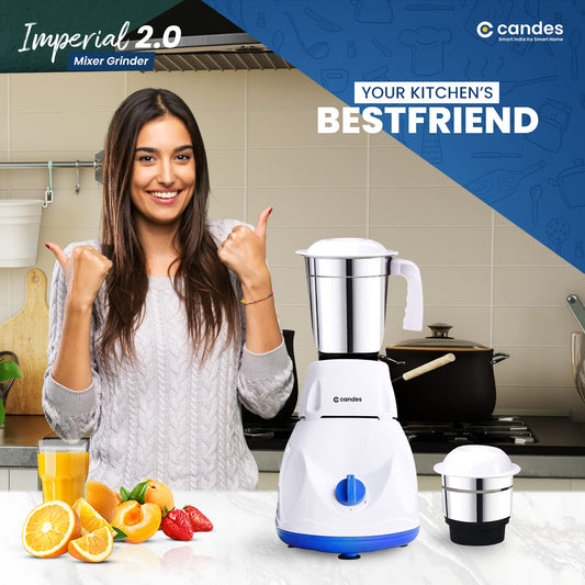 Imperial 550 Watt Mixer Grinder with 2 Jars | Powerful Motor with 1 Year Warranty - White Blue
