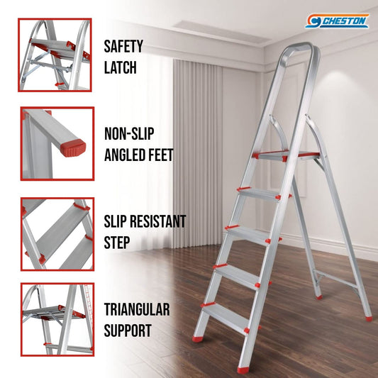 5-Step Aluminium Ladder for Home & Office Use I 5 Wide Steps I Skid-Free Rubber Padded Steps | Lightweight & Foldable I 5.1 Feet I Wobble Free