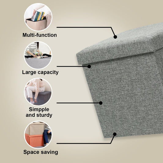 Homestic Storage Stool | Square Toy Storage Box | Foot Rest Stool | Folding Seating Stool | Wardrobe Organizer for Clothes-Books | Storage Box for Living Room | M ZH007GY | Gray