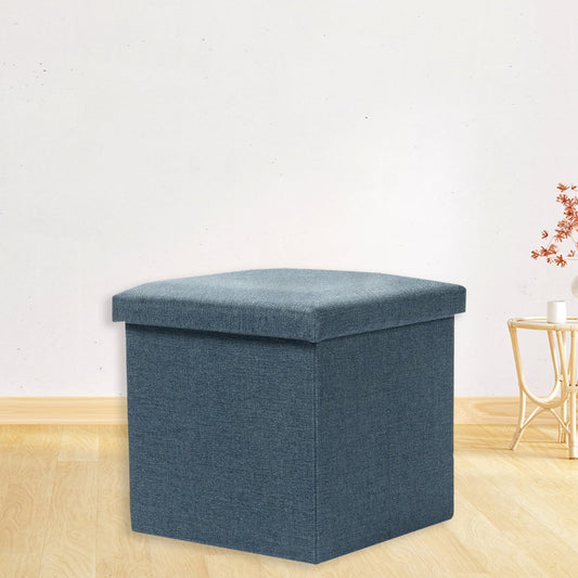 Kuber Industries Storage Stool | Square Toy Storage Box | Foot Rest Stool | Folding Seating Stool | Wardrobe Organizer for Clothes-Books | Storage Box for Living Room | M ZH006BU | Navy Blue