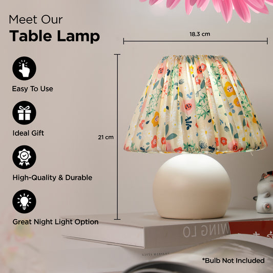 Table Lamp for Bedroom | 21 Cm Height| Ceramic Base with Fabric Shade | Table Lamp for Study | House Warming Gift for New Home |Home Decor Items for Living Room - Floral Print
