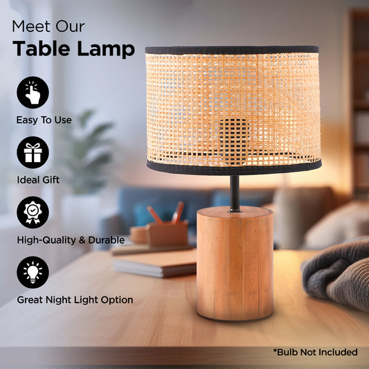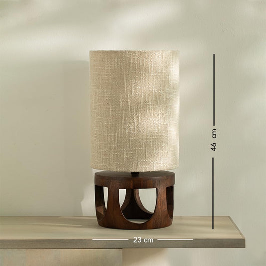 Table Lamp for Bedroom-27 CM|Made of Wood+Iron|Table Lamp for Study|Home Decor Light|Aesthetic Table Lamp for Living Room, Office Desk|Gift For Housewarming Ceremony| Home Decor Items-Cylindrical