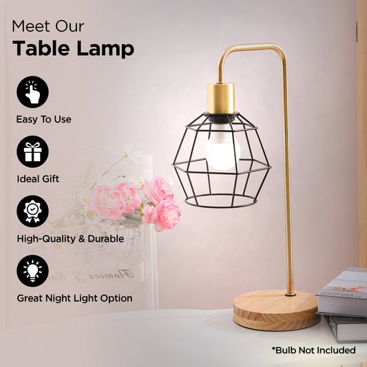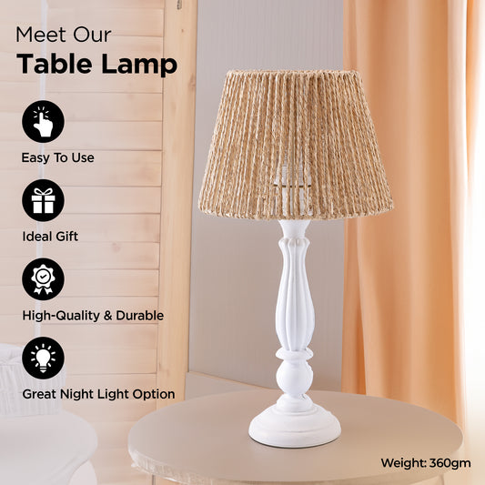 Table Lamp for Study and Home Decor (44cm) | Made up of Wood & Iron | Table Lamp for Bedroom | Study Lamp for Students | Standard Size | Night Lamp for Bedroom | White
