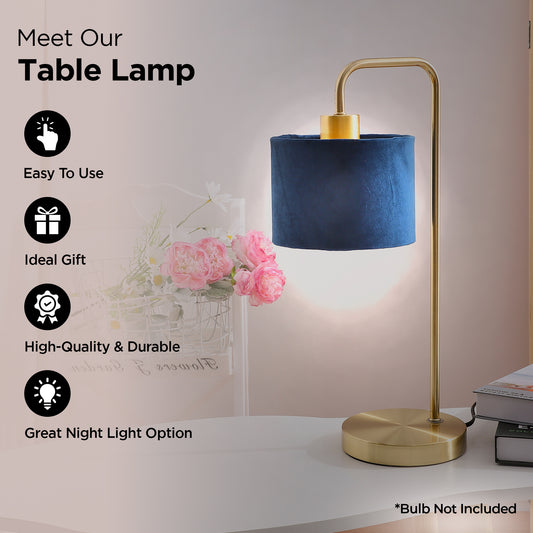 Table Lamp for Home Decor (48 cm)| Marble Base | Iron Frame with Blue Velvet Shade Table Lamp for Bedroom | Side Table Lamp for Study | Night Lamp for Bedroom Side Table | Decorative Table Lamp