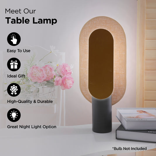 Table Lamp for Bedroom-31CM |Home Decor Light Made up of Rattan and Linen|Table Lamp for Study |Aesthetic Table Lamp for Living Room, Office Desk|Gift for House Warming Ceremony |Home Decor Items