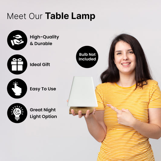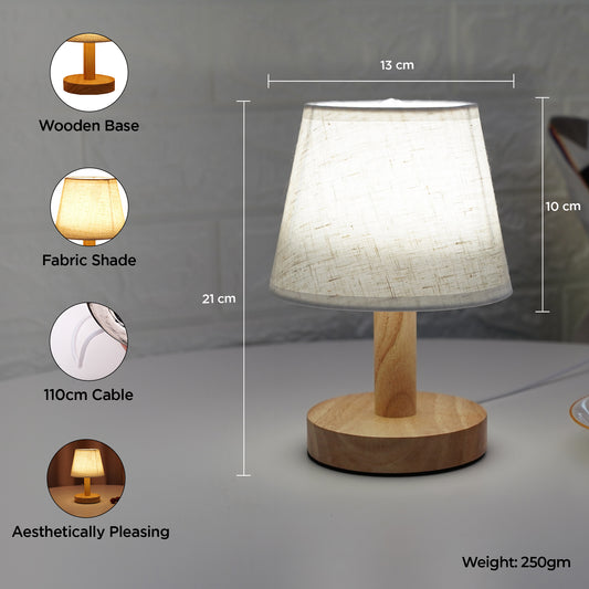 Table Lamp with Wooden Base & Fabric Shade | Dimmable Aesthetic Design | Ideal for Bedroom & Living Room