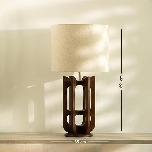 Wooden Table Lamp with White Shade | Decorative Night Light for Bedroom & Living Room | 35 x 35 x 69 cm | Brown