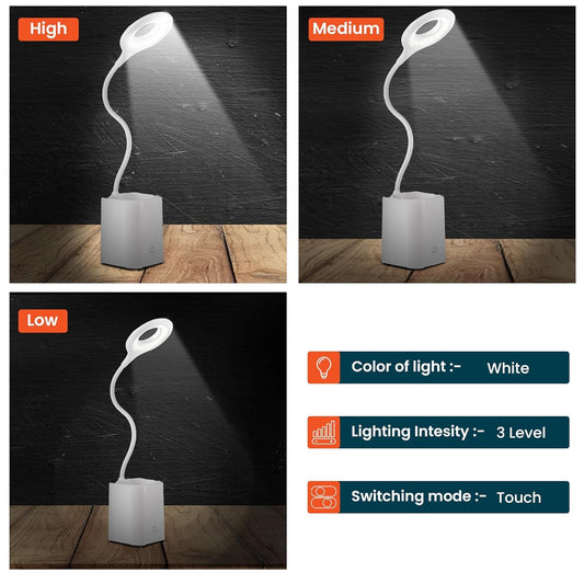 Kuber Industries Monochrome White Pencil Holder Lamp |Rechargeable Table Light with USB|Battery Capacity 1200mAh (White)