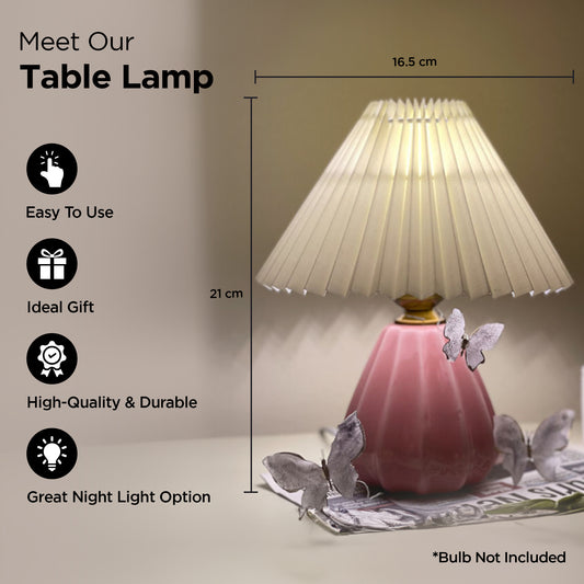 Dimmable Table Lamp for Bedroom | 21 Cm Height| Ceramic Base with Fabric Shade | Table Lamp for Study | Study Lamp for Students| Home Decor Items for Living Room - Pink