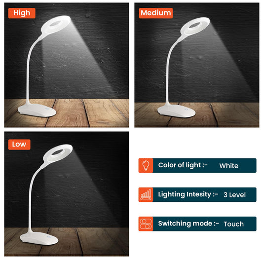 Kuber Industries Ring Base Table Lamp|Rechargeable Table Light with USB|Battery Capacity 1200mAh (White)