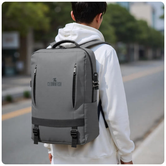 THE CLOWNFISH Haven Series Laptop Bag | Office travel with USB port & cable | Backpack | 35L | Grey | 18 Inch