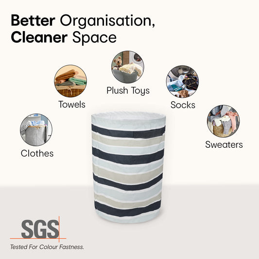 Stripe Rope Basket (Medium) | Laundry Basket |Woven Household Organiser Unit| Cotton Rope Laundry Basket |Multipurpose Storage Organiser for Wardrobe/Bathroom/Home/Kitchen