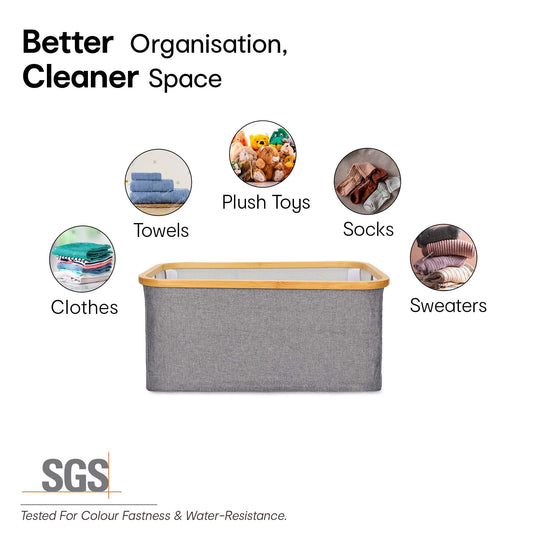 Homestic Storage Basket | Bamboo Cloth Storage Basket |Storage Basket for Clothes-Toys | Natural Bamboo Cube Storage Basket | Foldable & Durable | SPYLH997 | 30 LTR | Brown