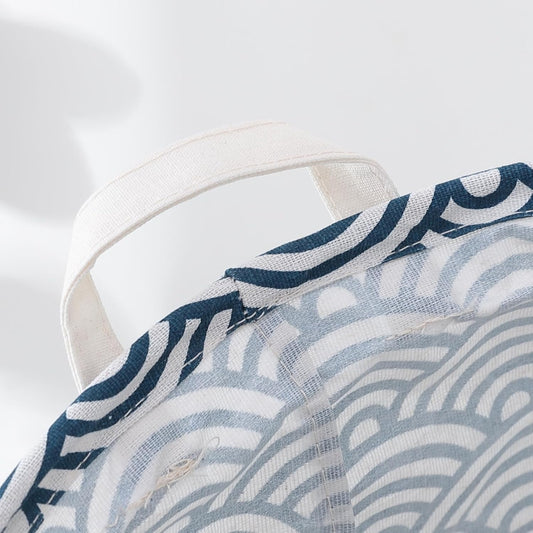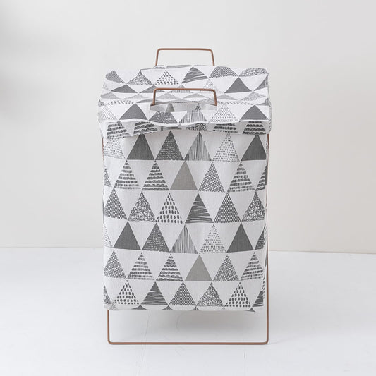 Viewing60LTR Cotton Round Laundry Hamper - Triangle-Print | Foldable Grey Basket for Clothes & Toys