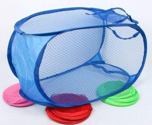 China Maid Nylon Mesh Laundry Bag|Dirty Clothes Basket with Carry Handles|Foldable Pop-up Mesh Hamper, 30 litres (Multicolor)