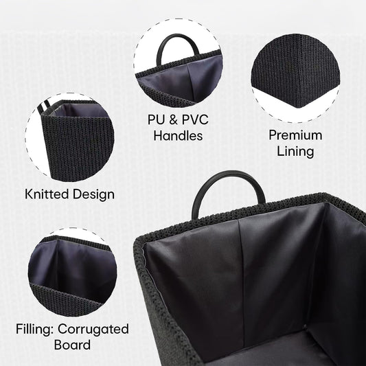 Tapered Rectangle Knitted Storage Basket with Built-in Handles | Multi-Purpose Storage with Handle for Living Room Bathroom Laundry & Toys|Decorative Living Room, Bedroom, Closet, Home