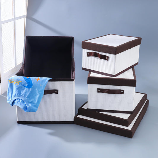 Kuber Industries Pack of 4 Storage Box | Bamboo Storage Organizer Box | Storage Box for Clothes-Toys | Storage Box Hamper with Lid | Foldable & Durable | SPYLH1000 | White