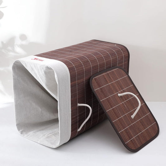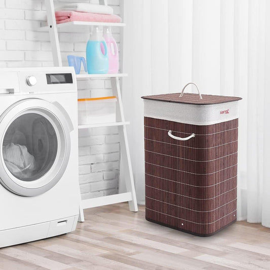 Bamboo Laundry Basket - Eco Friendly, Spacious & Lightweight | With Lid | 72L | Brown